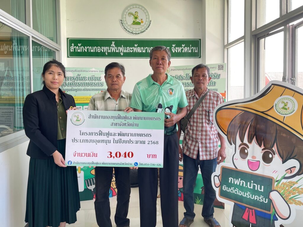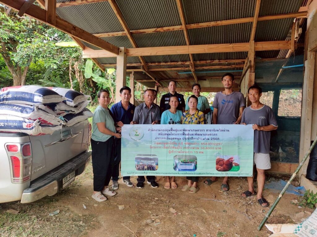 วันที่ 29 กันยายน 2568 เวลา 09.30 น. นางณัติกานต์ บุญเจริญ หัวหน้าสำนักงานกองทุนฟื้นฟูและพัฒนาเกษตรกร สาขาจังหวัดน่าน มอบหมายให้นายภัคพงศ์ ทองฟู ผู้ปฏิบัติงานของสำนักงานจังหวัดและนายภัทรศรุต คล้ายสุบรรณ ผู้ปฏิบัติงานกลุ่มงานบริการ ลงพื้นที่อำเภอนาหมื่น เพื่อส่งมอบปัจจัยการผลิต ให้กับองค์กรเกษตรกร กลุ่มเกษตรยั่งยืน ต.ลี ตามที่องค์กรเกษตรกรได้รับอนุมัติโครงการฟื้นฟูและพัฒนาเกษตรกร งบประมาณประจำปี 2568 ประเภทเงินอุดหนุน ชื่อโครงการ “เลี้ยงไก่พันธุ์ไข่” งบประมาณที่ได้รับ 38,400 บาท สมาชิกเข้าร่วมโครงการ 15 คน ระยะเวลาดำเนินกิจกรรม 1 ปี โดยมีนายเดช ธิเขียวอนุกรรมการฯ จังหวัดน่าน เข้าร่วมด้วย ณ ที่ทำการกลุ่มเกษตรยั่งยืน ต.ลี หมู่ 2 ตำบลเมืองลี อำเภอนาหมื่น จังหวัดน่าน