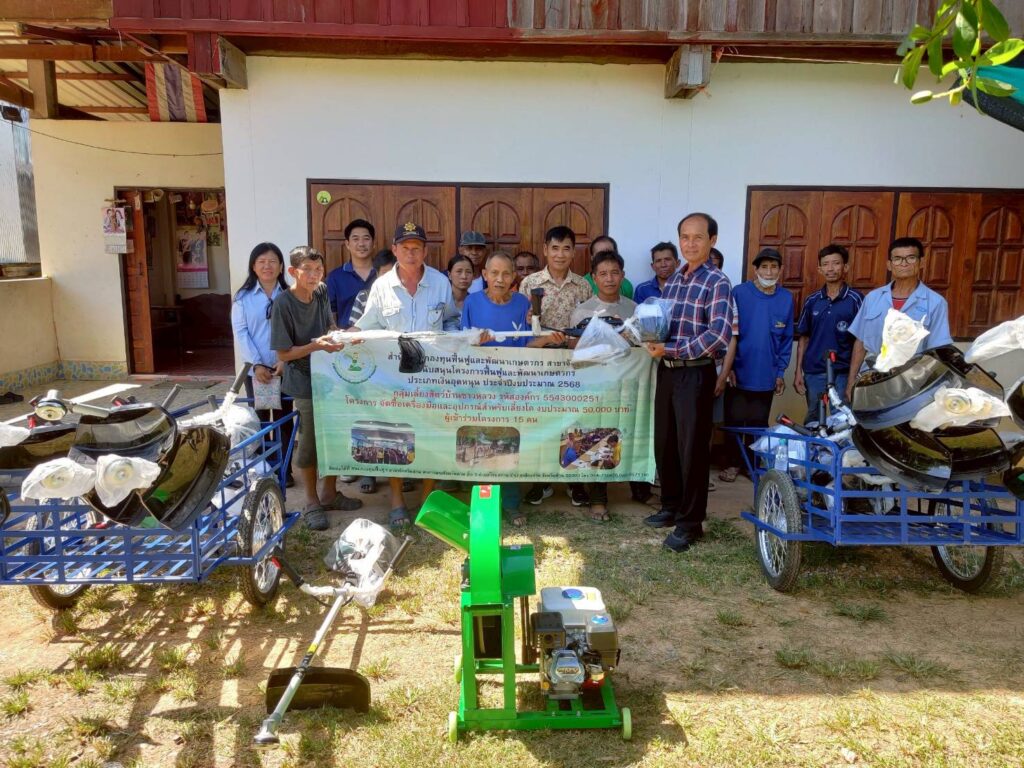 วันที่ 10 ตุลาคม 2568 เวลา 13.30 น. นางณัติกานต์ บุญเจริญ หัวหน้าสำนักงานกองทุนฟื้นฟูและพัฒนาเกษตรกร สาขาจังหวัดน่าน มอบหมายให้นายภัคพงศ์ ทองฟู ผู้ปฏิบัติงานของสำนักงานจังหวัดและนายภัทร์ศรุต คล้ายสุบรรณ ผู้ปฏิบัติงานกลุ่มงานบริการ ลงพื้นที่อำเภอเมืองน่าน เพื่อส่งมอบปัจจัยการผลิต ให้กับองค์กรเกษตรกร กลุ่มเลี้ยงสัตว์บ้านซาวหลวง ตามที่องค์กรเกษตรกรได้รับอนุมัติโครงการฟื้นฟูและพัฒนาเกษตรกร งบประมาณประจำปี 2568 ประเภทเงินอุดหนุน ชื่อโครงการ “จัดซื้้อเครื่องมือและอุปกรณ์สำหรับเลี้ยงโค” งบประมาณที่ได้รับ 50,000 บาท สมาชิกเข้าร่วมโครงการ 15 คน ระยะเวลาดำเนินกิจกรรม 1 ปี โดยมีนายบัณฑิต สวยงาม กรรมการบริหารกองทุนฟื้นฟูและพัฒนาเกษตรกรและ ร.ต.อ.วินัย ก้อนสมบัติ รองประธานอนุกรรมการฯ จังหวัดน่าน คนที่ 2 เข้าร่วมด้วย ณ ที่ทำการกลุ่มเลี้ยงสัตว์บ้านซาวหลวง หมู่ 5 ตำบลบ่อสวก อำเภอเมืองน่าน จังหวัดน่าน