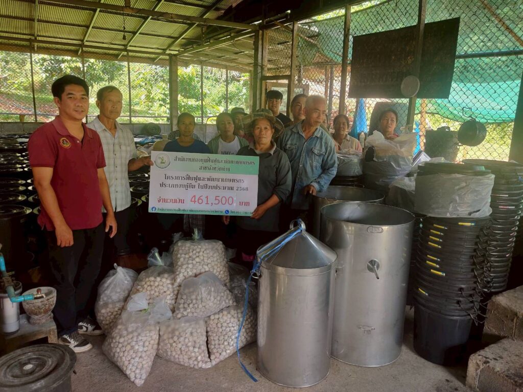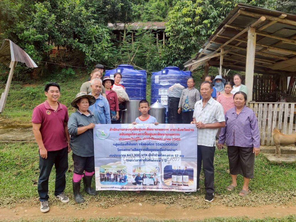วันที่ 16 ตุลาคม 2568 เวลา 10.00 น. นางณัติกานต์ บุญเจริญ หัวหน้าสำนักงานกองทุนฟื้นฟูและพัฒนาเกษตรกร สาขาจังหวัดน่าน มอบหมายให้นายภัคพงศ์ ทองฟู ผู้ปฏิบัติงานของสำนักงานจังหวัดและนายภัทร์ศรุต คล้ายสุบรรณ ผู้ปฏิบัติงานกลุ่มงานบริการ ลงพื้นที่อำเภอนาหมื่น เพื่อส่งมอบปัจจัยการผลิต จำนวน 461,500 บาท (เบิกงวดที่ 1) ให้กับองค์กรเกษตรกร กลุ่มเมืองลีพัฒนา ตามที่องค์กรเกษตรกรได้รับอนุมัติโครงการฟื้นฟูและพัฒนาเกษตรกร งบประมาณประจำปี 2568 ประเภทเงินกู้ยืม ชื่อโครงการ “ผลิตสุรากลั่นชุมชนเพื่อจำหน่าย” งบประมาณที่ได้รับ 643,300 บาท สมาชิกเข้าร่วมโครงการ 12 คน ระยะเวลาดำเนินกิจกรรม 7 ปี โดยมีนายเดช ธิเขียว อนุกรรมการฯ จังหวัดน่านเข้าร่วมด้วย ณ ที่ทำการกลุ่มเมืองลีพัฒนา บ้านน้ำอูน หมู่ 1 ตำบลเมืองลี อำเภอนาหมื่น จังหวัดน่าน