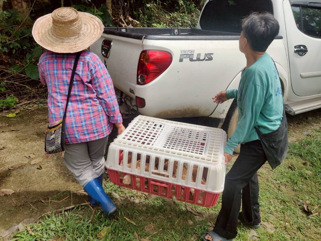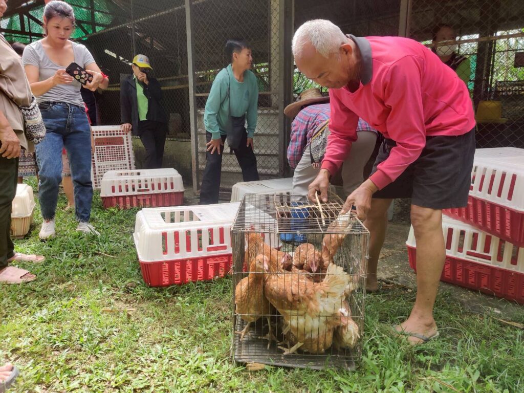 วันที่ 15 ตุลาคม 2568 เวลา 10.00 น. นางณัติกานต์ บุญเจริญ หัวหน้าสำนักงานกองทุนฟื้นฟูและพัฒนาเกษตรกร สาขาจังหวัดน่าน มอบหมายให้นายภัคพงศ์ ทองฟู ผู้ปฏิบัติงานของสำนักงานจังหวัดและนายภัทร์ศรุต คล้ายสุบรรณ ผู้ปฏิบัติงานกลุ่มงานบริการ ลงพื้นที่อำเภอทุ่งช้าง เพื่อส่งมอบปัจจัยการผลิต (งวดที่ 2) ให้กับองค์กรเกษตรกร กลุ่มเกษตรผสมผสานบ้านเวียงสอง ตามที่องค์กรเกษตรกรได้รับอนุมัติโครงการฟื้นฟูและพัฒนาเกษตรกร งบประมาณประจำปี 2568 ประเภทเงินอุดหนุน ชื่อโครงการ “เลี้ยงไก่พันธุ์ไข่” งบประมาณที่ได้รับ 45,450 บาท สมาชิกเข้าร่วมโครงการ 15 คน ระยะเวลาดำเนินกิจกรรม 1 ปี โดยมีนายสมบูรณ์ ขอคำ อนุกรรมการฯ จังหวัดน่าน เข้าร่วมด้วย ณ ที่ทำการกลุ่มเกษตรผสมผสานบ้านเวียงสอง หมู่ 4 ตำบลและ อำเภอทุ่งช้าง จังหวัดน่าน