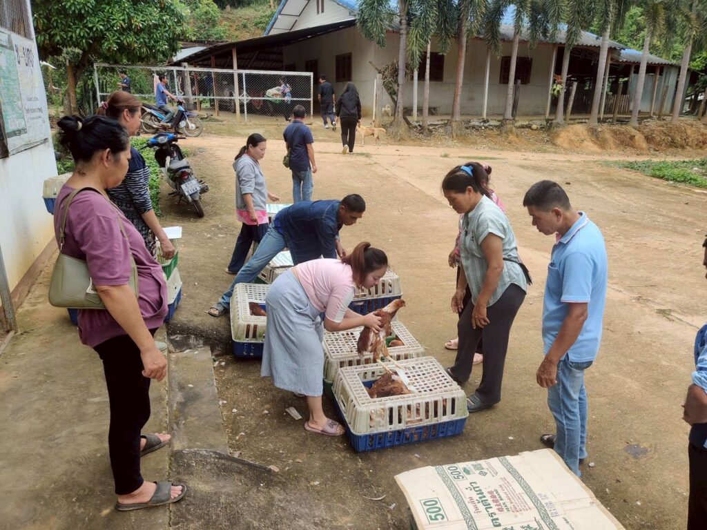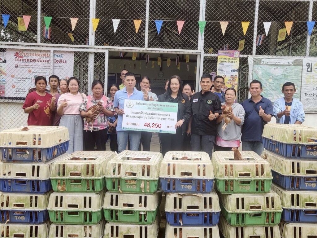 วันที่ 11 พฤศจิกายน 2568 เวลา 10.30 น. นางณัติกานต์ บุญเจริญ หัวหน้าสำนักงานกองทุนฟื้นฟูและพัฒนาเกษตรกร สาขาจังหวัดน่าน พร้อมด้วยเจ้าหน้าที่สำนักงานฯ ลงพื้นที่อำเภอแม่จริม เพื่อส่งมอบปัจจัยการผลิต (งวดที่ 2) ให้กับองค์กรเกษตรกร กลุ่มออมทรัพย์บ้านห้วยกอม อ.แม่จริม ตามที่องค์กรเกษตรกรได้รับอนุมัติโครงการฟื้นฟูและพัฒนาเกษตรกร งบประมาณประจำปี 2568 ประเภทเงินอุดหนุน ชื่อโครงการ “เลี้ยงไก่พันธุ์ไข่” งบประมาณที่ได้รับ 48,250 บาท สมาชิกเข้าร่วมโครงการ 15 คน ระยะเวลาดำเนินกิจกรรม 1 ปี โดยมี ร.ต.อ.วินัย ก้อนสมบัติ รองประธานอนุกรรมการฯ จังหวัดน่านคนที่ 2 เข้าร่วมด้วย ณ หอประชุมบ้านห้วยกอม หมู่ 3 ตำบลน้ำปาย อำเภอแม่จริม จังหวัดน่าน