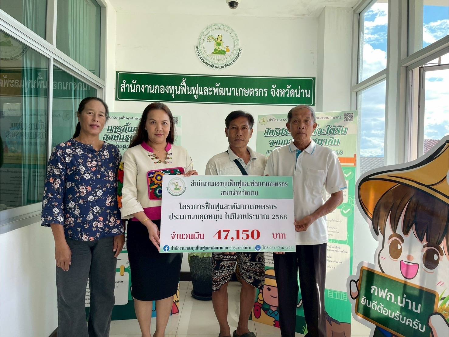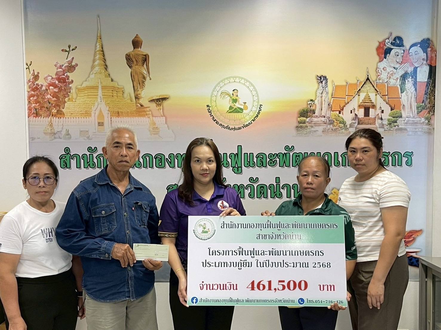 กฟก.น่านมอบเงินให้กับองค์กรเกษตรกรที่ได้รับอนุมัติโครงการฟื้นฟูและพัฒนาเกษตรกร ประจำปีงบประมาณ 2568